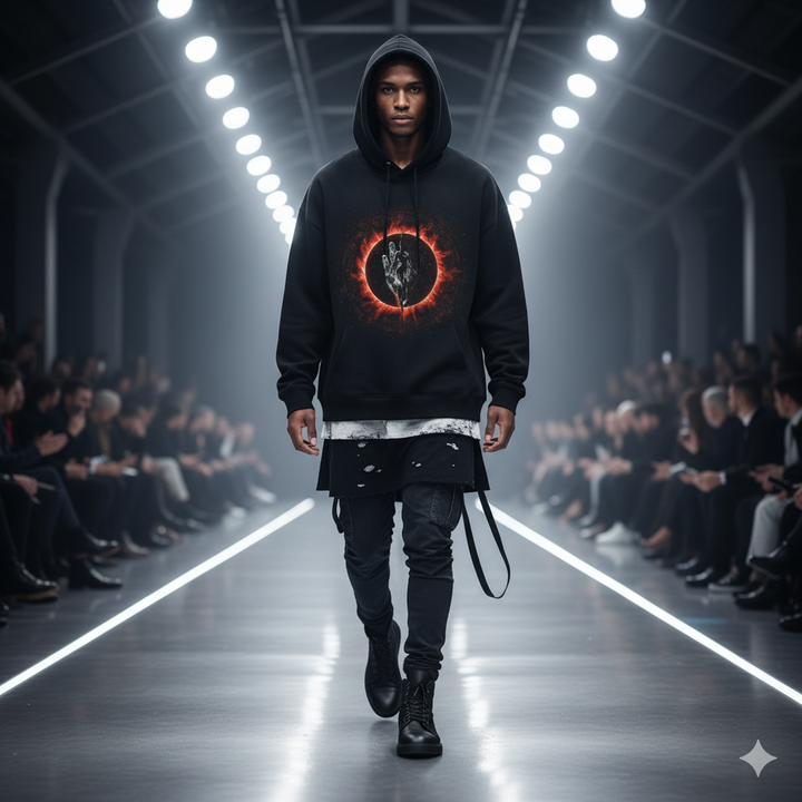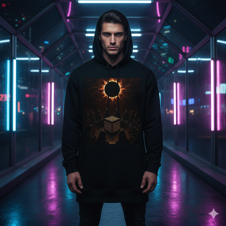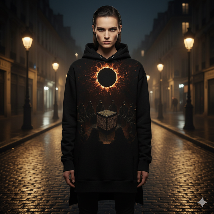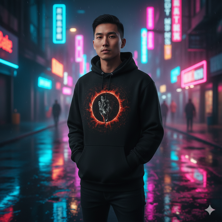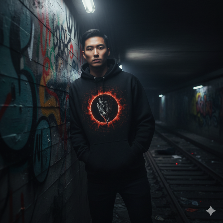 A hyper-premium hoodie crafted for those drawn to fire, destruction, and rebirth. Featuring the fiery eclipse in mid-disintegration, this piece captures the moment when darkness consumes light—yet something new emerges. A visual metaphor for endings that unlock beginnings.